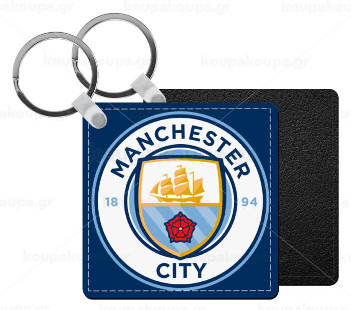 Manchester City FC , Μπρελόκ Δερματίνη, τετράγωνο ΜΑΥΡΟ (5x5cm)