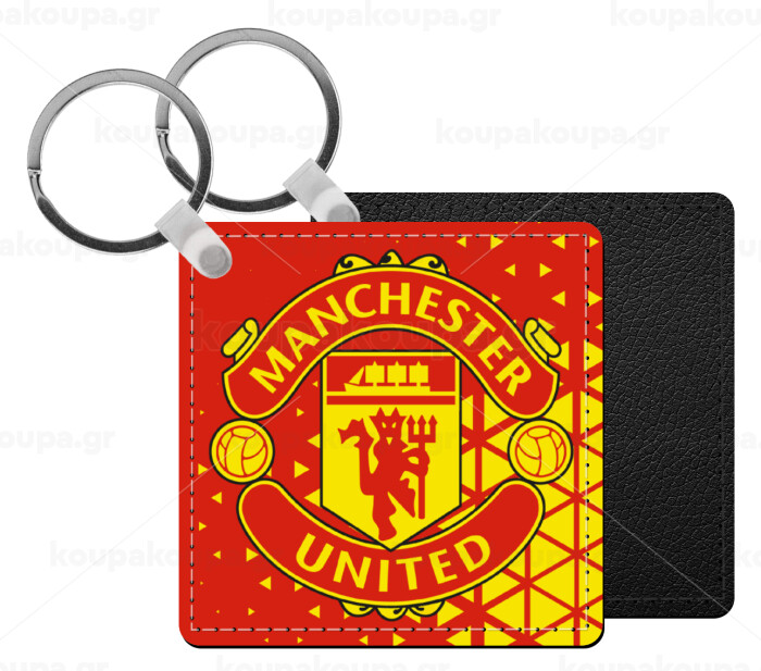 Manchester United F.C., Μπρελόκ Δερματίνη, τετράγωνο ΜΑΥΡΟ (5x5cm)