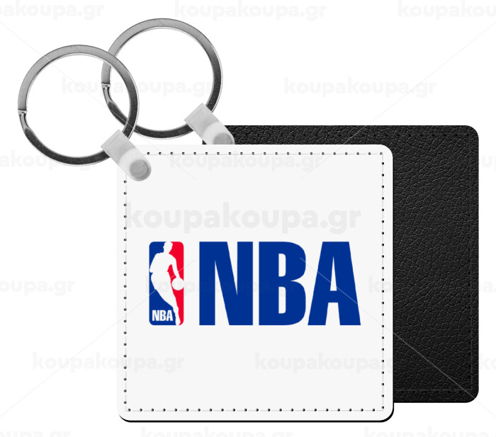 NBA, Μπρελόκ Δερματίνη, τετράγωνο ΜΑΥΡΟ (5x5cm)