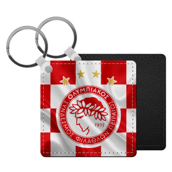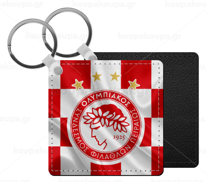 Olympiakos flag, Μπρελόκ Δερματίνη, τετράγωνο ΜΑΥΡΟ (5x5cm)