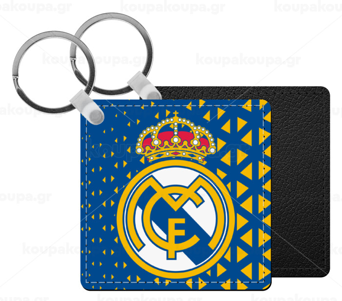 Real Madrid CF, Μπρελόκ Δερματίνη, τετράγωνο ΜΑΥΡΟ (5x5cm)