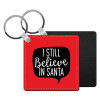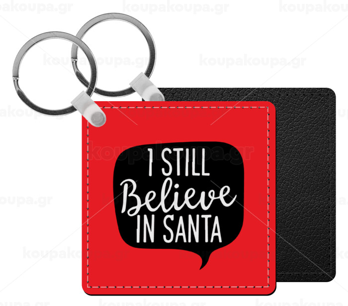 Ι still believe in santa, Μπρελόκ Δερματίνη, τετράγωνο ΜΑΥΡΟ (5x5cm)