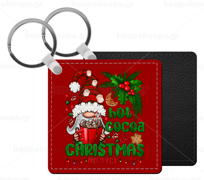 Hot Cocoa And Christmas Movies, Μπρελόκ Δερματίνη, τετράγωνο ΜΑΥΡΟ (5x5cm)