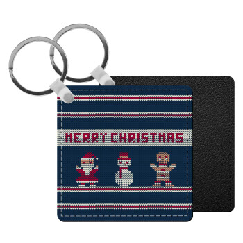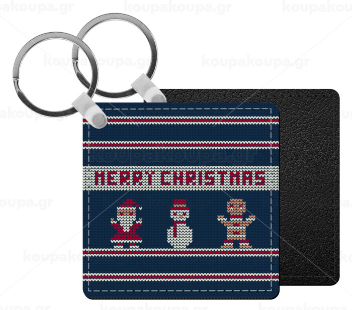 Merry christmas knitted, Μπρελόκ Δερματίνη, τετράγωνο ΜΑΥΡΟ (5x5cm)