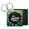 PHOTO xmas lights, Μπρελόκ Δερματίνη, τετράγωνο ΜΑΥΡΟ (5x5cm)