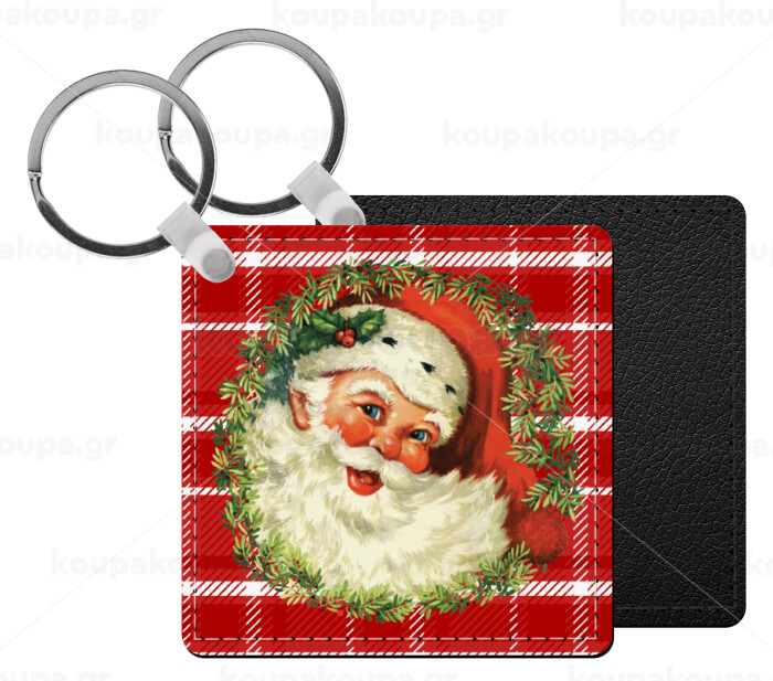 Santa Claus, Μπρελόκ Δερματίνη, τετράγωνο ΜΑΥΡΟ (5x5cm)