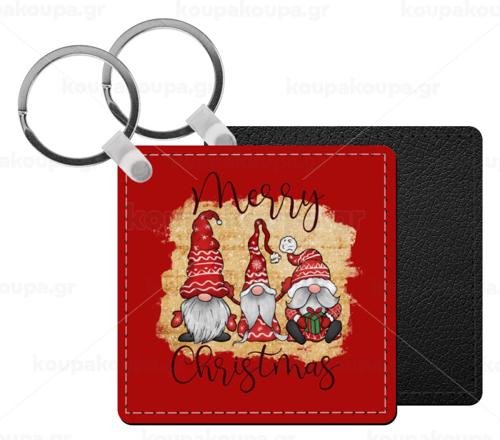 Christmas nordic gnomes, Μπρελόκ Δερματίνη, τετράγωνο ΜΑΥΡΟ (5x5cm)