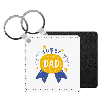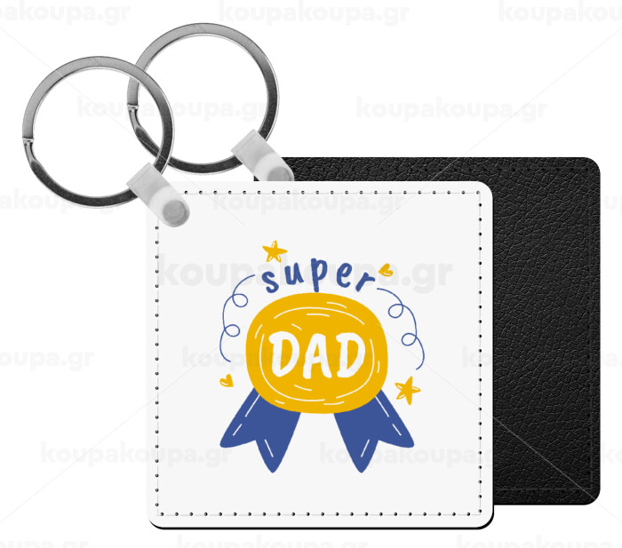 SuperDad, Μπρελόκ Δερματίνη, τετράγωνο ΜΑΥΡΟ (5x5cm)