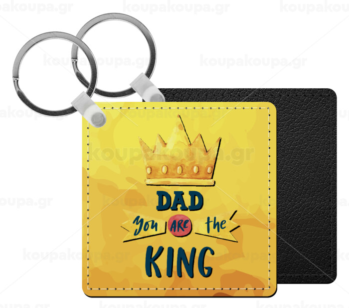 Dad you are the King, Μπρελόκ Δερματίνη, τετράγωνο ΜΑΥΡΟ (5x5cm)