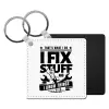 I fix stuff, Μπρελόκ Δερματίνη, τετράγωνο ΜΑΥΡΟ (5x5cm)