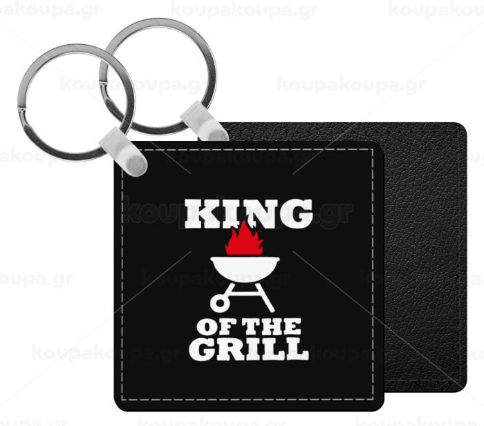 KING of the Grill, Μπρελόκ Δερματίνη, τετράγωνο ΜΑΥΡΟ (5x5cm)