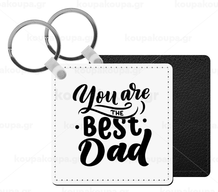 You are the best Dad, Μπρελόκ Δερματίνη, τετράγωνο ΜΑΥΡΟ (5x5cm)