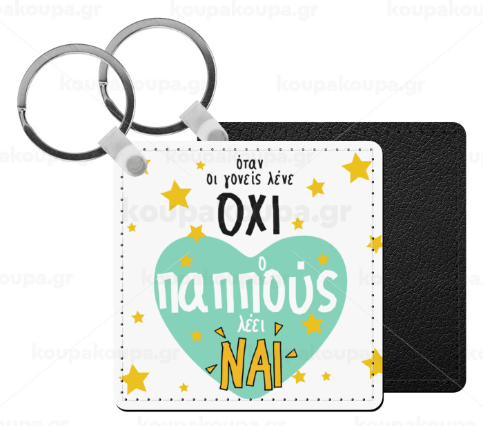 Όταν οι γονείς λένε ΟΧΙ, ο παππούς λέει ΝΑΙ, Μπρελόκ Δερματίνη, τετράγωνο ΜΑΥΡΟ (5x5cm)