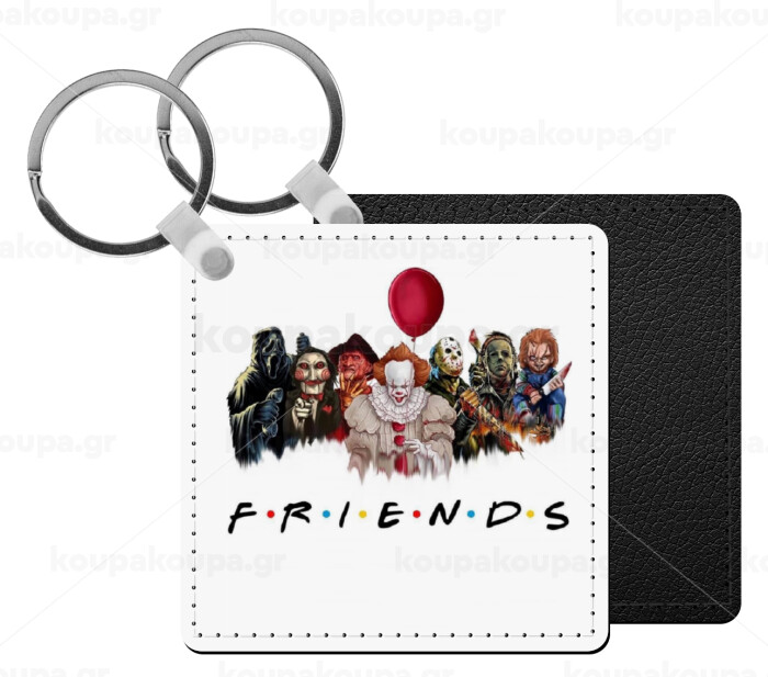 Halloween Friends, Μπρελόκ Δερματίνη, τετράγωνο ΜΑΥΡΟ (5x5cm)