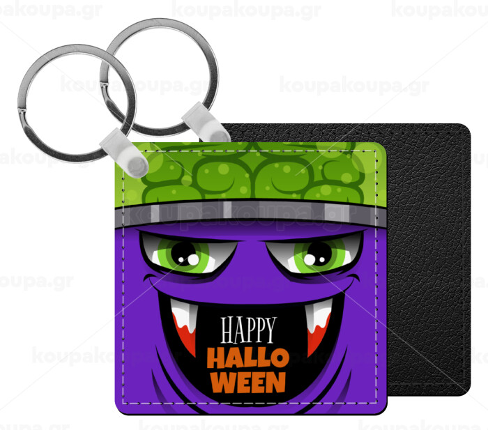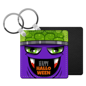 Happy Halloween (Χαλοουίν), Μπρελόκ Δερματίνη, τετράγωνο ΜΑΥΡΟ (5x5cm)