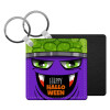 Halloween trick or treat Monster, Μπρελόκ Δερματίνη, τετράγωνο ΜΑΥΡΟ (5x5cm)