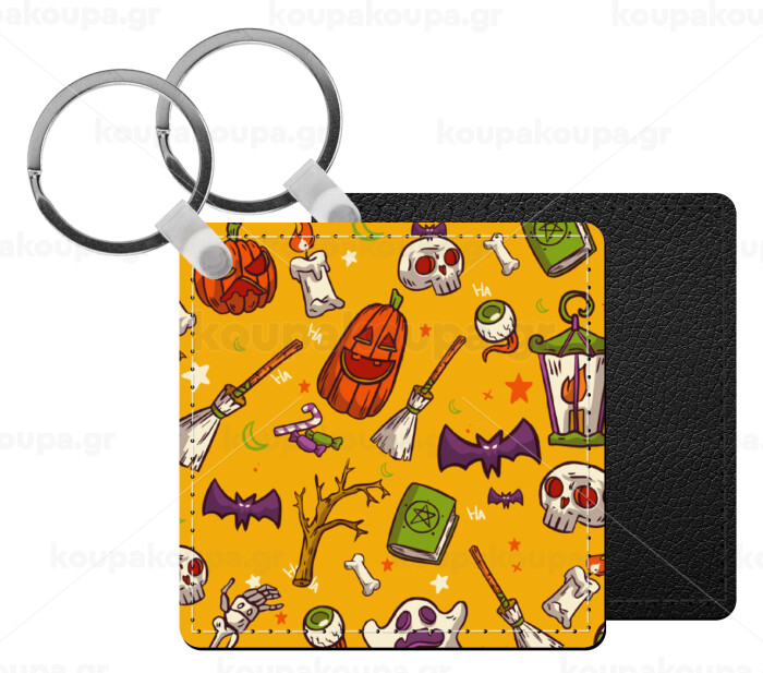 Happy Halloween (Χαλοουίν), Μπρελόκ Δερματίνη, τετράγωνο ΜΑΥΡΟ (5x5cm)