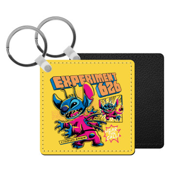 Stitch Experiment 626, Μπρελόκ Δερματίνη, τετράγωνο ΜΑΥΡΟ (5x5cm)