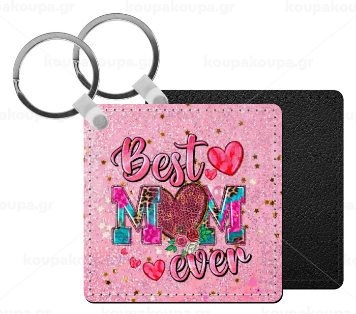 Best mom ever Mother's Day, Μπρελόκ Δερματίνη, τετράγωνο ΜΑΥΡΟ (5x5cm)