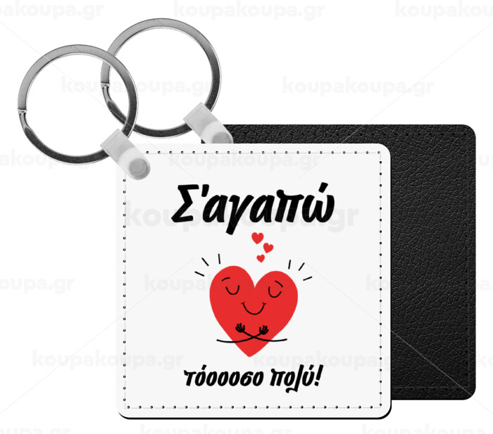 Σ΄αγαπώ τόοοοσο πολύ καρδιά, Μπρελόκ Δερματίνη, τετράγωνο ΜΑΥΡΟ (5x5cm)