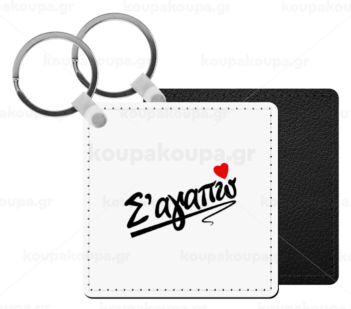 Σ΄ αγαπώ!!!, Μπρελόκ Δερματίνη, τετράγωνο ΜΑΥΡΟ (5x5cm)