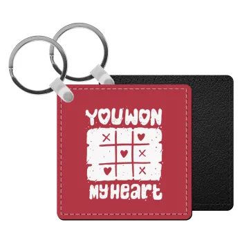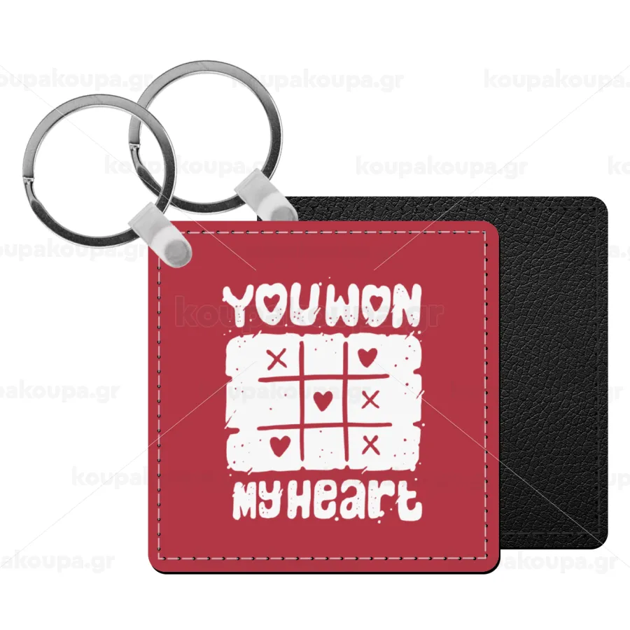 Τρίλιζα you won my heart, Μπρελόκ Δερματίνη, τετράγωνο ΜΑΥΡΟ (5x5cm)