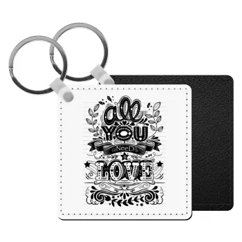 All you need is love, Μπρελόκ Δερματίνη, τετράγωνο ΜΑΥΡΟ (5x5cm)