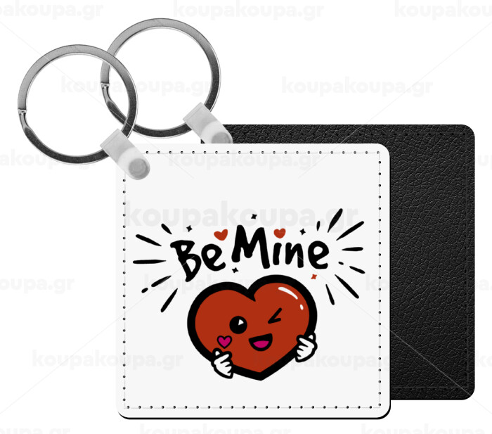 Be mine!, Μπρελόκ Δερματίνη, τετράγωνο ΜΑΥΡΟ (5x5cm)