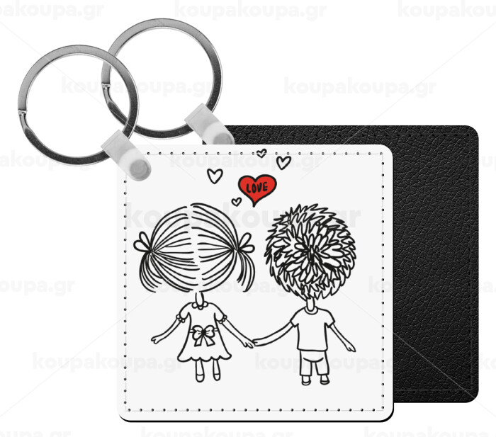 Sigma Valentine's Day , Μπρελόκ Δερματίνη, τετράγωνο ΜΑΥΡΟ (5x5cm)