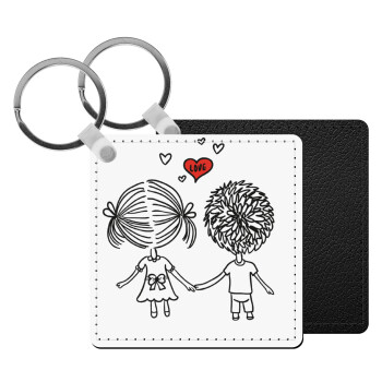 comics hands love, Μπρελόκ Δερματίνη, τετράγωνο ΜΑΥΡΟ (5x5cm)