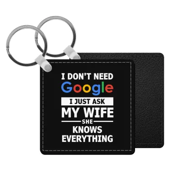 I don't need Google, just ask my WIFE, Μπρελόκ Δερματίνη, τετράγωνο ΜΑΥΡΟ (5x5cm)