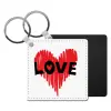I Love You red heart, Μπρελόκ Δερματίνη, τετράγωνο ΜΑΥΡΟ (5x5cm)