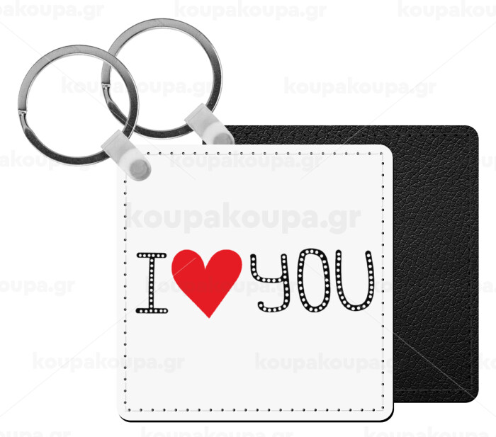 I Love You small dots, Μπρελόκ Δερματίνη, τετράγωνο ΜΑΥΡΟ (5x5cm)