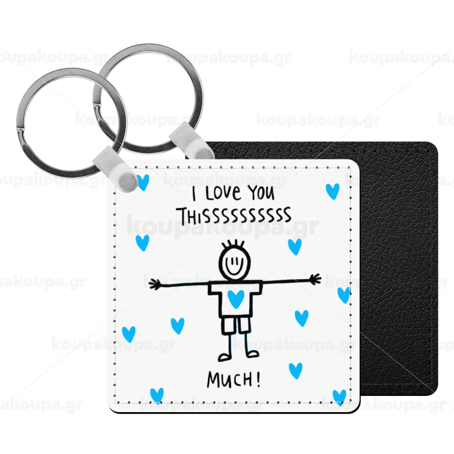 I Love you thissss much (boy)..., Μπρελόκ Δερματίνη, τετράγωνο ΜΑΥΡΟ (5x5cm)