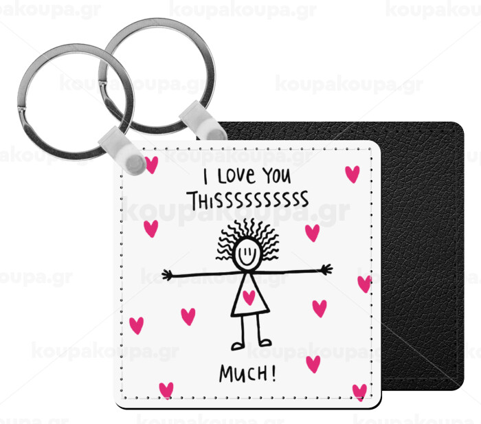 I Love you thissss much..., Μπρελόκ Δερματίνη, τετράγωνο ΜΑΥΡΟ (5x5cm)