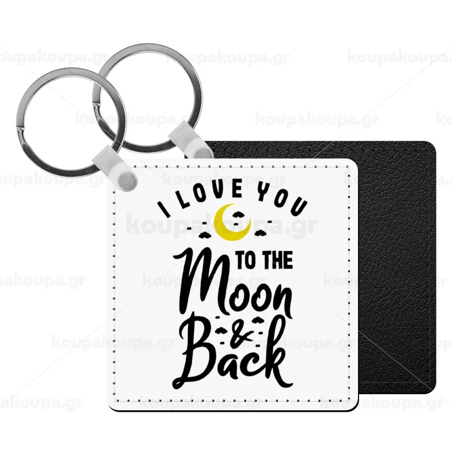 I love you to the moon and back, Μπρελόκ Δερματίνη, τετράγωνο ΜΑΥΡΟ (5x5cm)