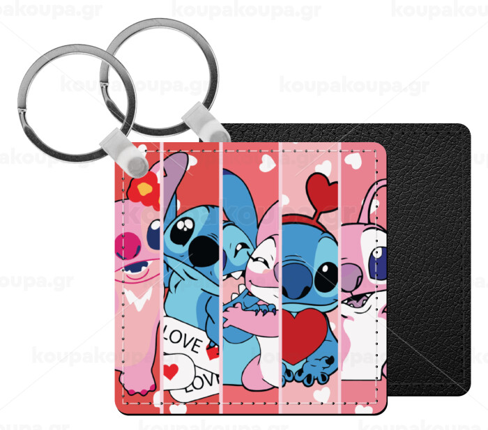 Lilo & Stitch Love, Μπρελόκ Δερματίνη, τετράγωνο ΜΑΥΡΟ (5x5cm)