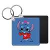Stitch heart, Μπρελόκ Δερματίνη, τετράγωνο ΜΑΥΡΟ (5x5cm)