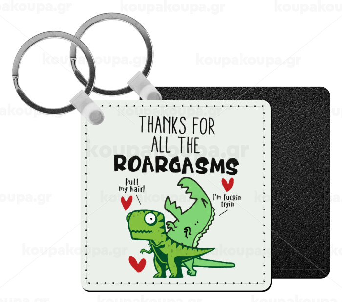 Thanks for all the ROARGASMS, Μπρελόκ Δερματίνη, τετράγωνο ΜΑΥΡΟ (5x5cm)