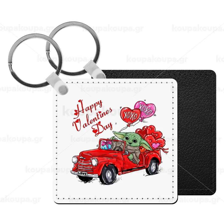 Yoda, happy valentines day (xoxo), Μπρελόκ Δερματίνη, τετράγωνο ΜΑΥΡΟ (5x5cm)