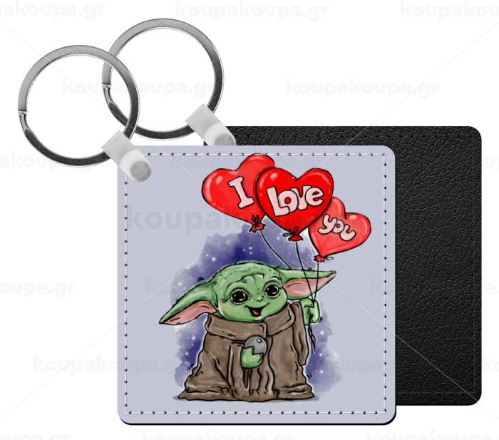 Yoda, i love you, Μπρελόκ Δερματίνη, τετράγωνο ΜΑΥΡΟ (5x5cm)