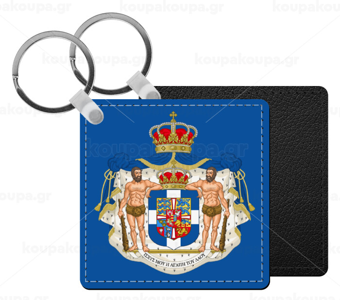 Hellas kingdom, Μπρελόκ Δερματίνη, τετράγωνο ΜΑΥΡΟ (5x5cm)