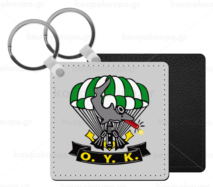Ελληνικός Στρατός, Μπρελόκ Δερματίνη, τετράγωνο ΜΑΥΡΟ (5x5cm)