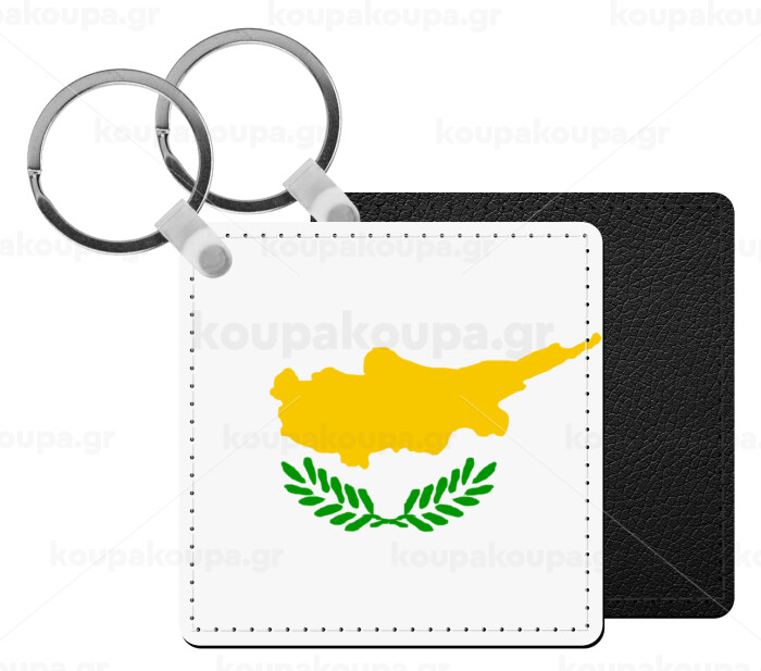 Cyprus flag, Μπρελόκ Δερματίνη, τετράγωνο ΜΑΥΡΟ (5x5cm)