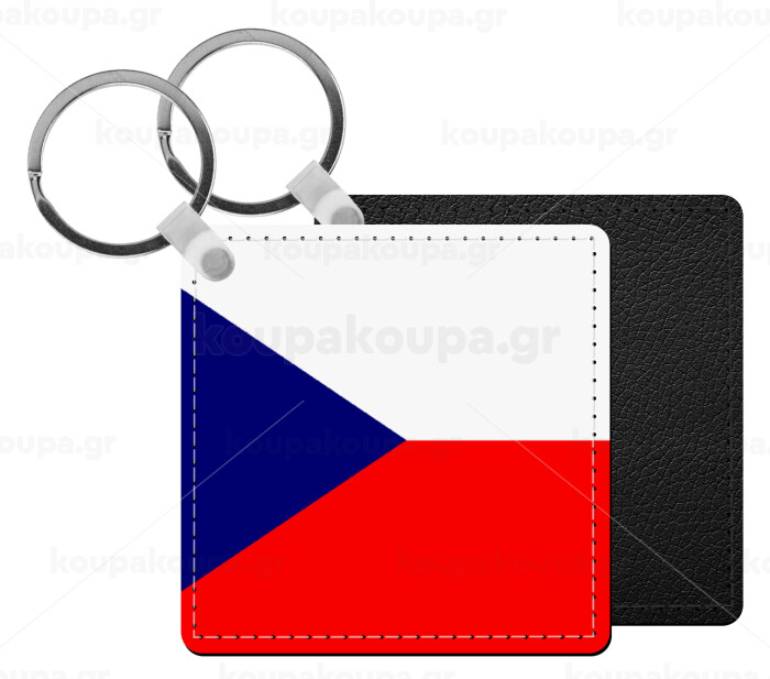 Czechia flag, Μπρελόκ Δερματίνη, τετράγωνο ΜΑΥΡΟ (5x5cm)