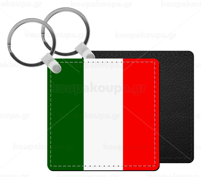 Italy flag, Μπρελόκ Δερματίνη, τετράγωνο ΜΑΥΡΟ (5x5cm)