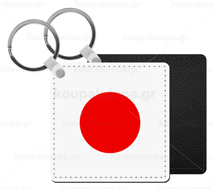 Japan flag, Μπρελόκ Δερματίνη, τετράγωνο ΜΑΥΡΟ (5x5cm)