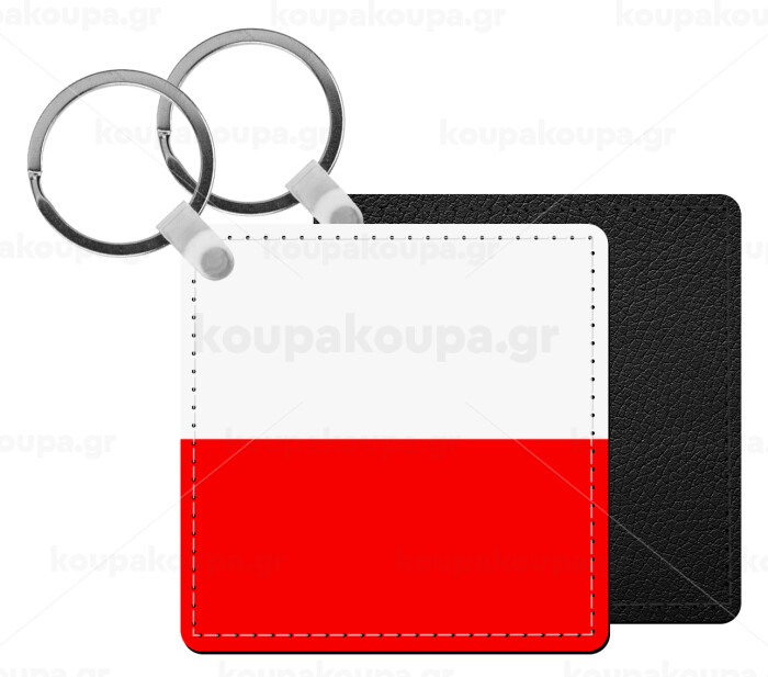 Poland flag, Μπρελόκ Δερματίνη, τετράγωνο ΜΑΥΡΟ (5x5cm)