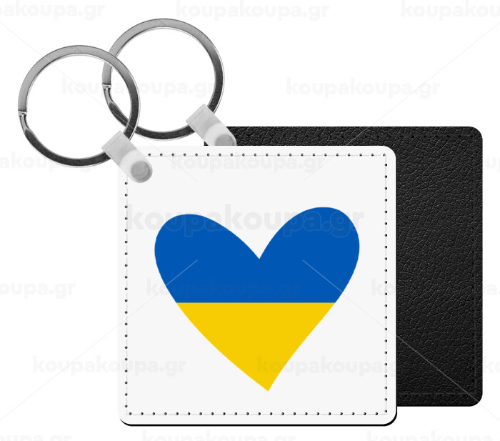 UKRAINE heart, Μπρελόκ Δερματίνη, τετράγωνο ΜΑΥΡΟ (5x5cm)