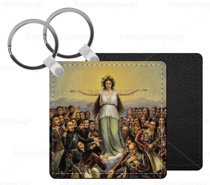 Η Ελλάς Ευγνωμονούσα, Μπρελόκ Δερματίνη, τετράγωνο ΜΑΥΡΟ (5x5cm)